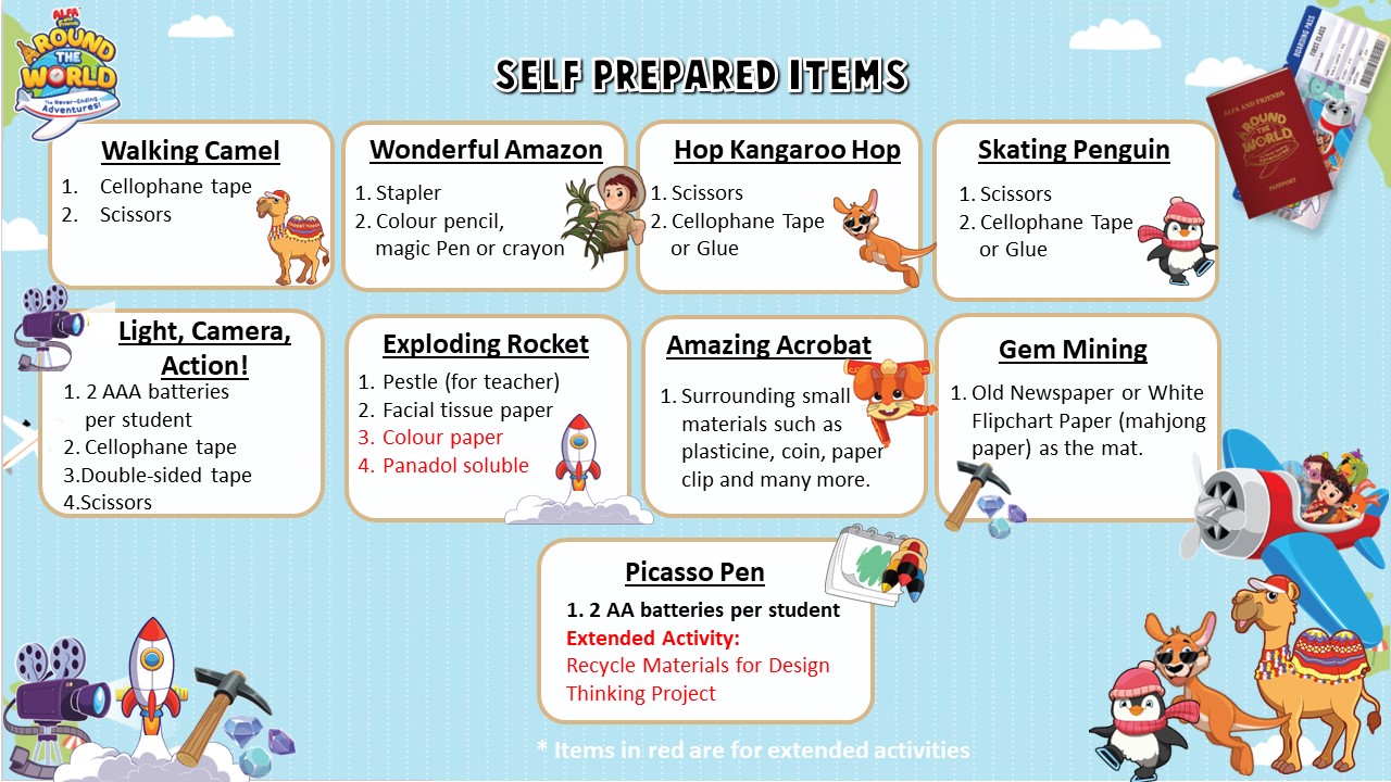 Before going for an adventure with the children, study the lesson plan and prepare all the self-prepared items needed for the experiments.