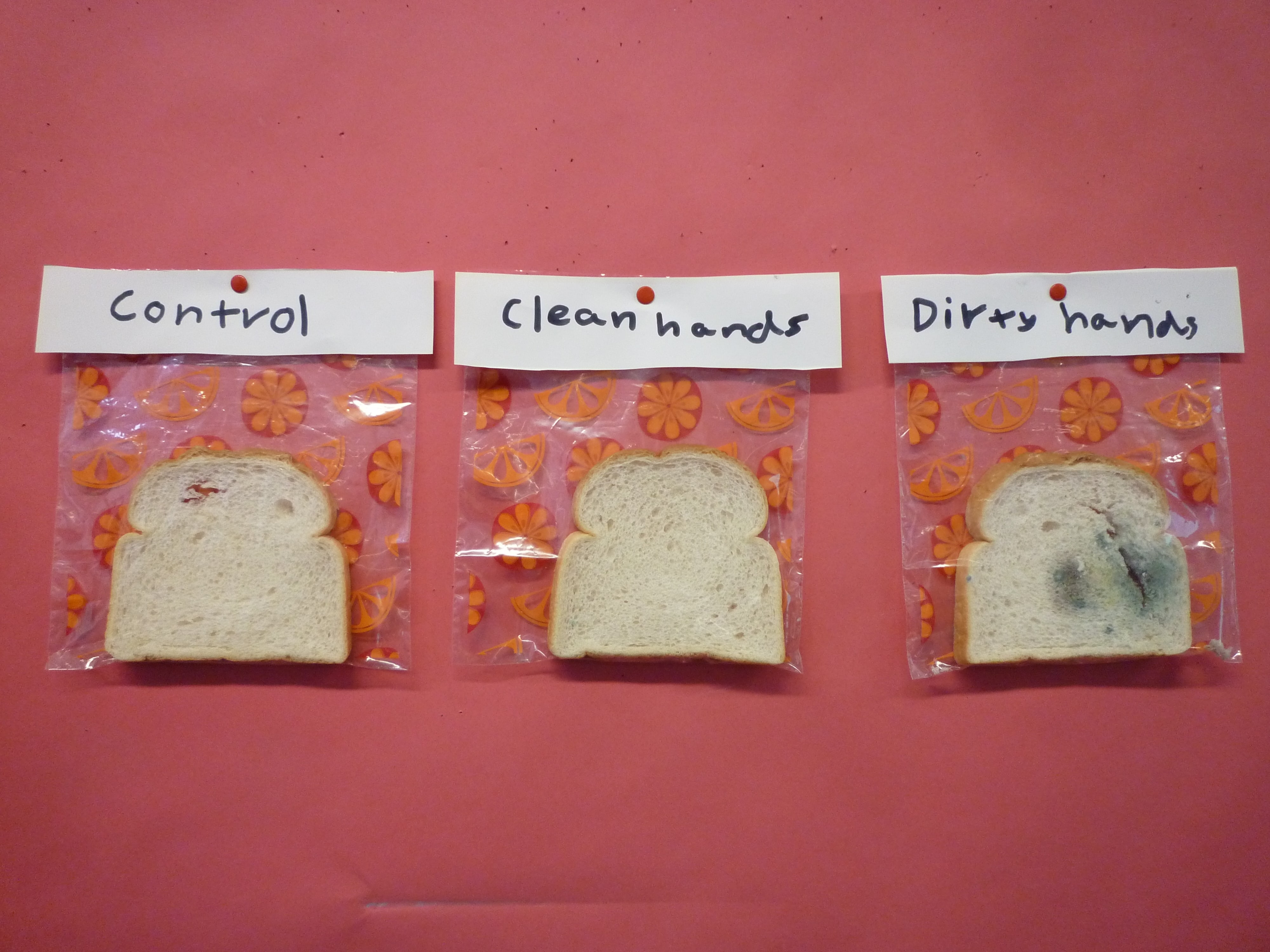 Tip: For the moudly bread experiment, ask the children to investigate what happens when dirty hands and cleaned hands are used to swab the bread. Observe if there are any differences in the mould that grows on the bread.