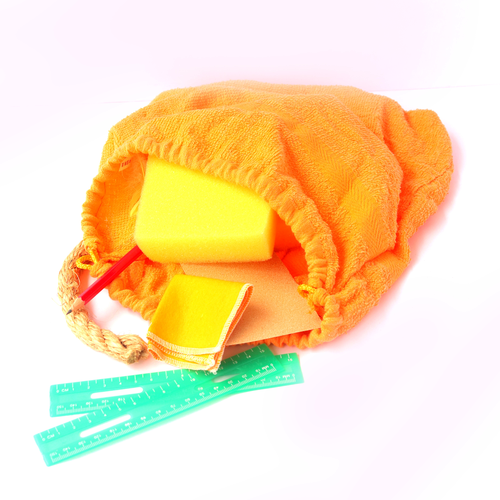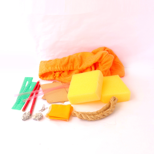 - Fill the bag with different items that have different textures. You need to put two same items inside the bag. ( E.g.: 2 sponges, 2 feathers, 2 pencils, 2 sandpapers)