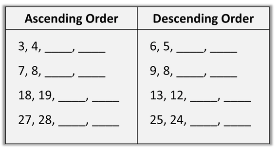 • Ascending order – Numbers are arranged from the smallest to the largest.