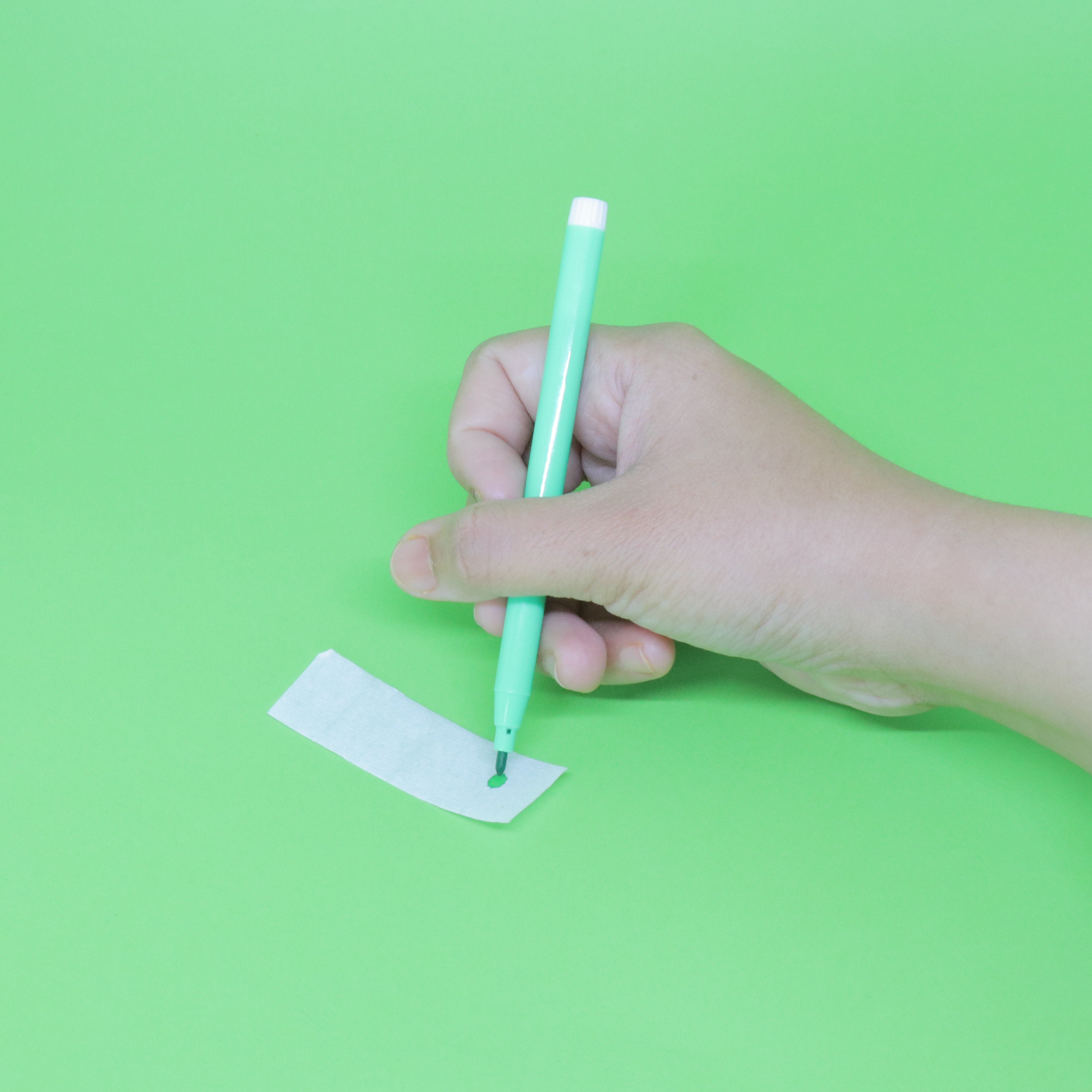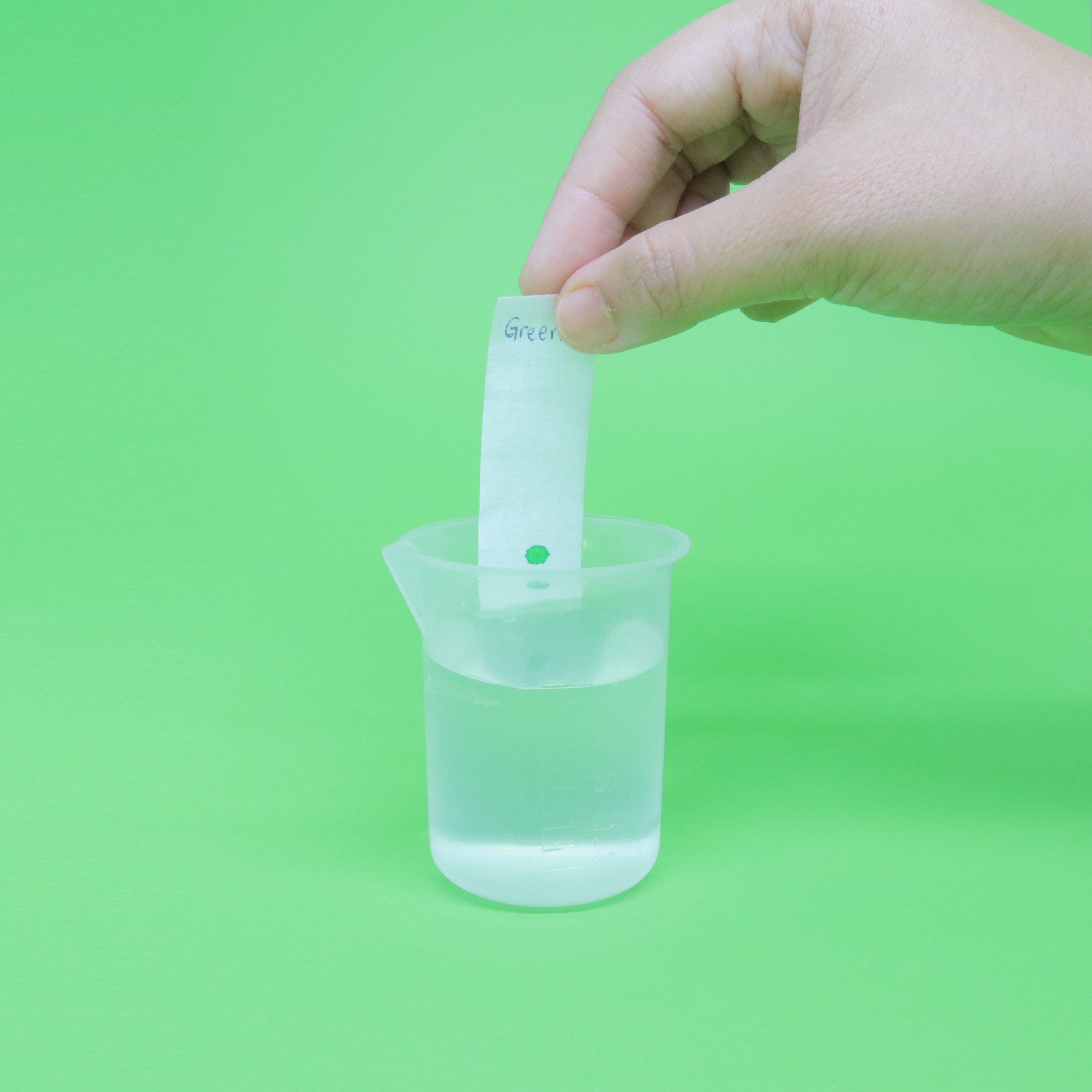 - Mark a dot of light green, 2cm from the bottom end on one of their blotting papers, by using the light green magic pen.