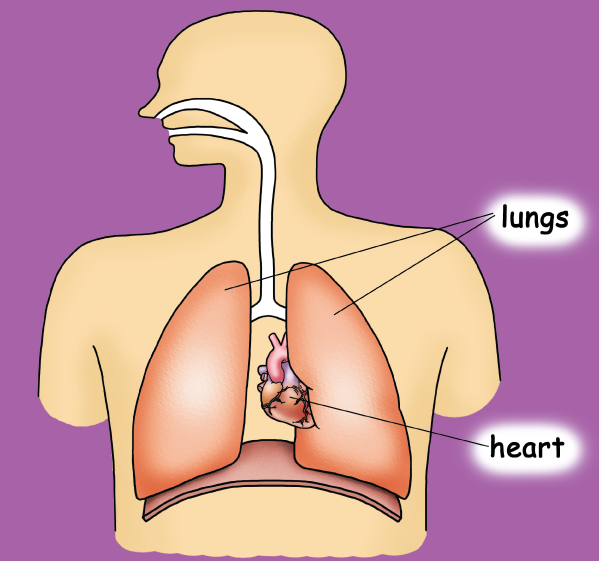 Tell your child that we have two lungs, one in each side of our chest. They need to be placed close because they work together.